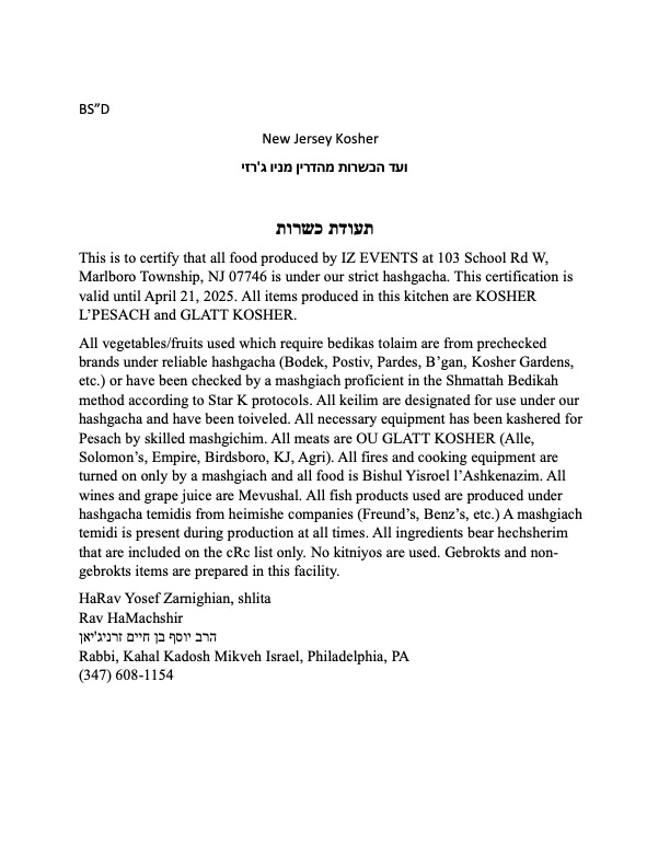 Kosher Supervision Vaad HaKashrus of New Jersey